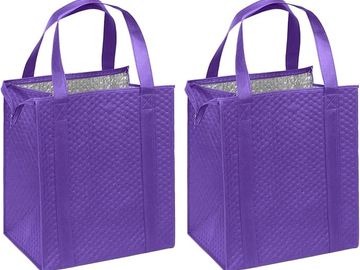 This 2-pack of large, purple insulated bags is perfect for keeping groceries hot or cold. Strong and spacious, they’re ideal for shopping trips and transporting items securely.